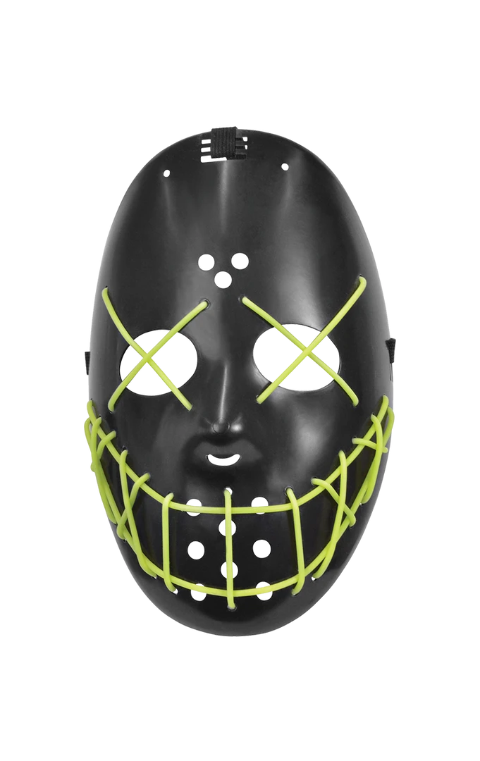 Get ready to purge! Inspired by The Purge movies, this Anarchy Green Glow Purge Facepiece features the stitched mouth and crossed eyes design seen in the third movie, The Purge: Election Year, and worn by the Statue of Liberty character. This facepiece will light-up your night whether you’re clubbing, attending a festival or celebrating Halloween in style.