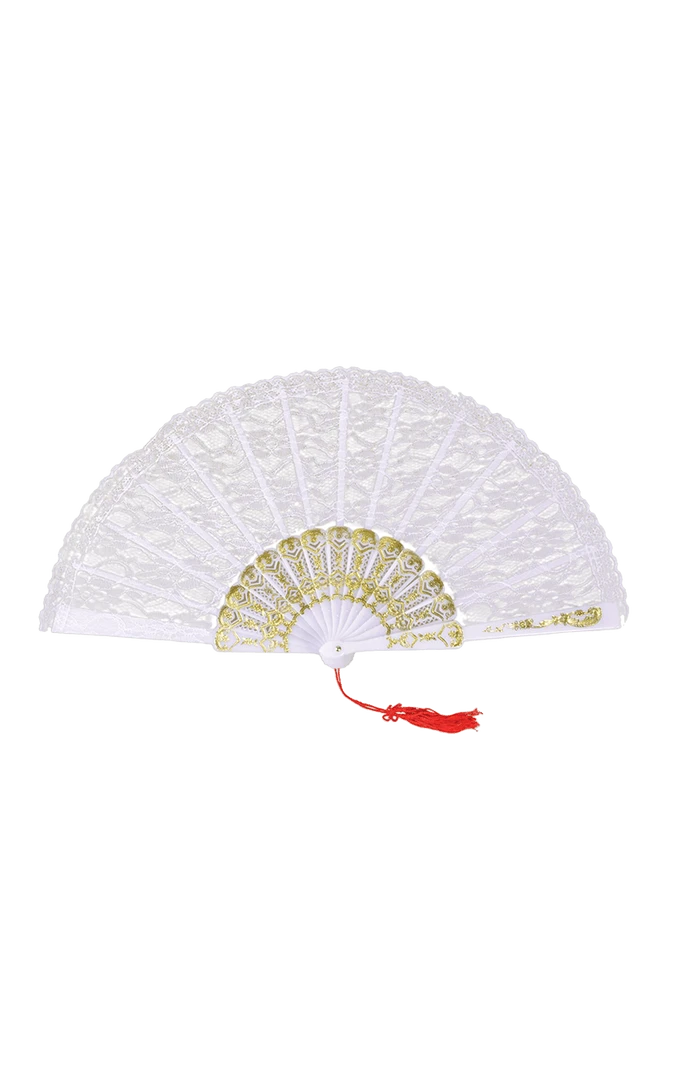 Cool yourself down from the heat of the party with this White Lace Fan Accessory! Perfect for Around the World and Historical themed parties!