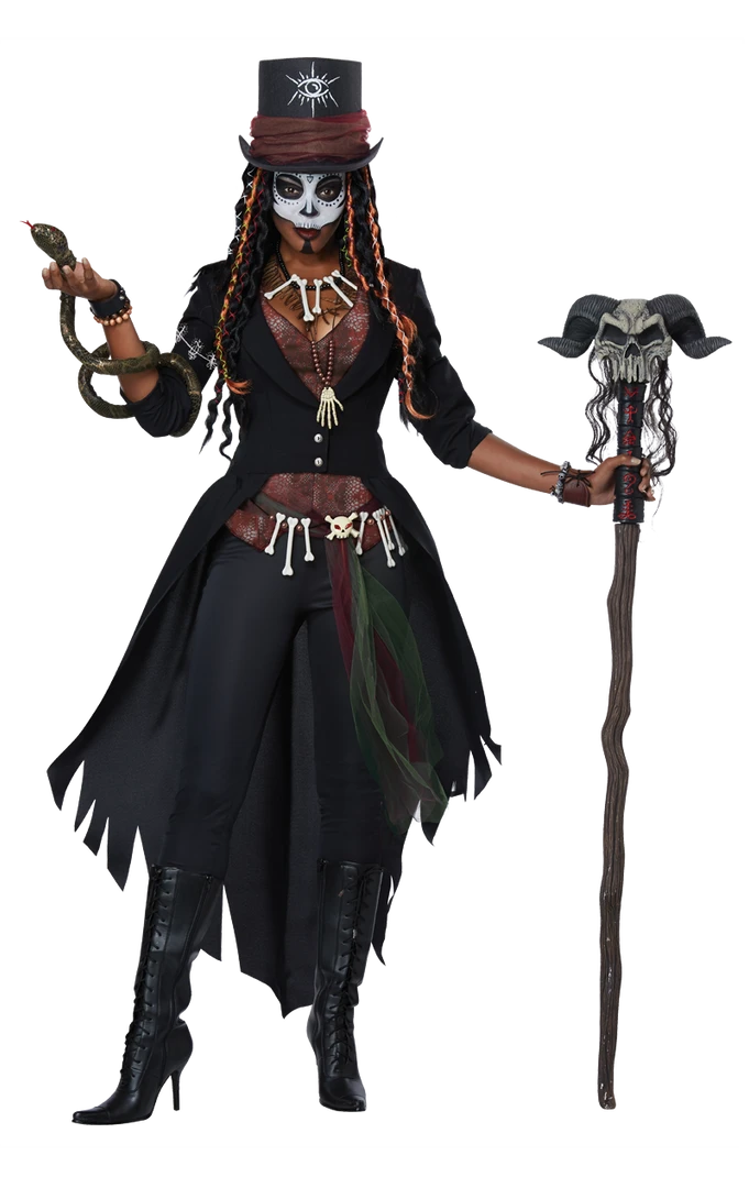 Cast your Voodoo Magic on your unsuspecting party guests this Halloween… The Witch Doctor will see you now! This unique outfit is a dark arts twist on the traditional Halloween ensemble. Celebrate magic in all of it’s dark and twisted glory, whilst looking super cool and unique! The Womens Voodoo Magic Priestess Costume offers a unique look for Halloween, and is perfect for Day of the Dead parties too.Â