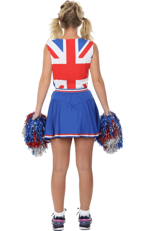 Join a team of fun loving, dance spirited girls, and bring it on with our Ladies Cheerleader Outfit. This unique costume has all the fun elements of traditional American cheerleading attire, but with a patriotic British twist. Get ready to bring some spirit to your night out!