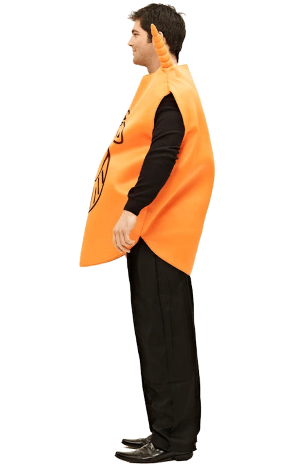The Adult Retro Space Hopper Costume is made up of a vibrant orange tunic in the shape of the Space Hopper, with unicorn-like handles at the top and the famous smiley face printed in black on the front. This is an easy and comfortable costume that will make a big impact as you bounce to the beat on the dancefloor, showing off your moves.