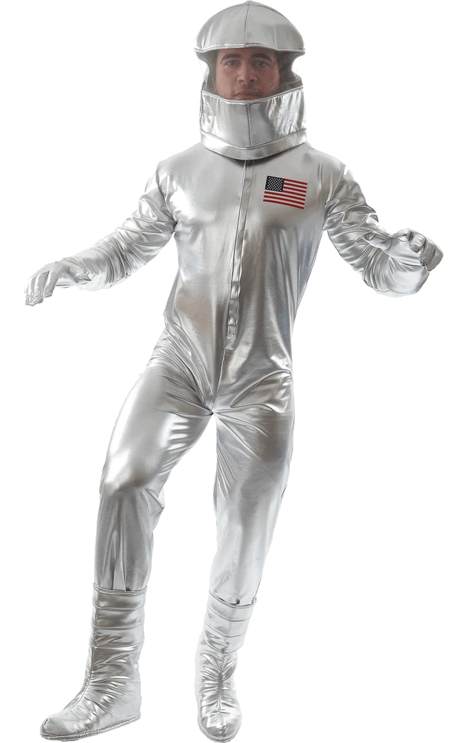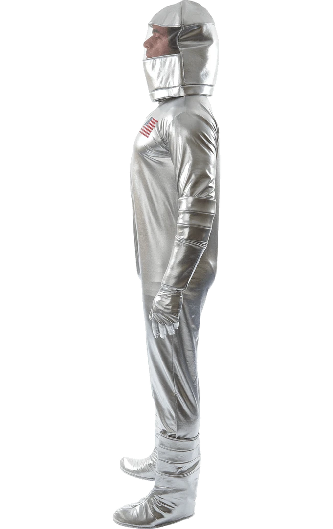 The Mens Traditional Silver Astronaut Costume is made up of a silver metallic that has an American Flag Printed on the left of the chest. It also features matching boot covers and gloves. Completing your ‘out of this world’ look is an over-head helmet with a clear visor, giving you everything you need to jump in your space shuttle and head off to another galaxy.