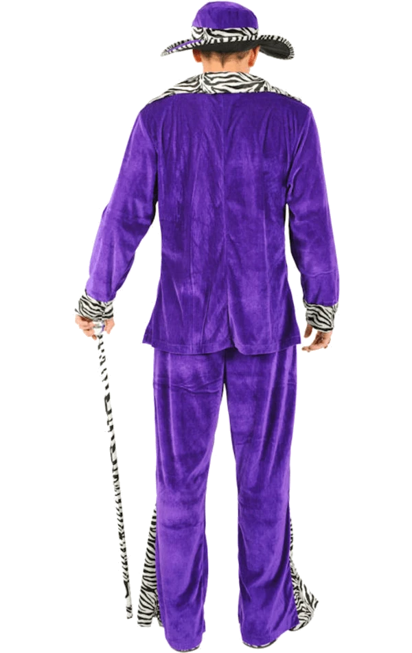 The Adult Purple Pimp Costume is made up of velvet-style purple jacket with a black and white zebra print on the collar. It also includes a pair of matching flared trousers with the same zebra print pattern down the sides. Completing the look is a purple and zebra print hat, giving you everything you need to become the ultimate ladies man.