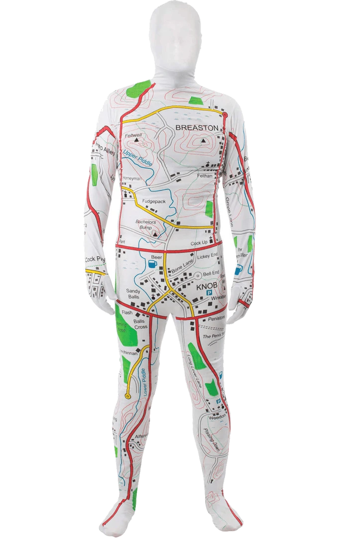 For someone that loves to spend all their time searching rudely named locations on Google, you’ll love the Rude Map Body Suit Costume. Featuring favourites such as Sandy Balls, Lickey End and Penistone, this Bodysuit is sure to make you laugh!