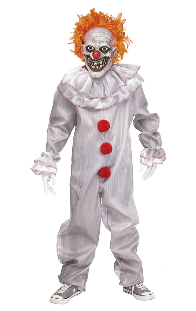 Know a little one that loves horror? Let them become their favourite killer clown this Halloween with the Kids It Pennywise Clown Costume. In this kids pennywise costume, your child will be getting all the best costumes when trick-or-treating for having the best creepy clown costume! This clown jumpsuit complete with neck ruffles and pom-poms also has a sinister facepiece with bright orange hair and a demonic face. You’ll usually find this one lurking around the sewers, but at Halloween, he can’t resist the fun!