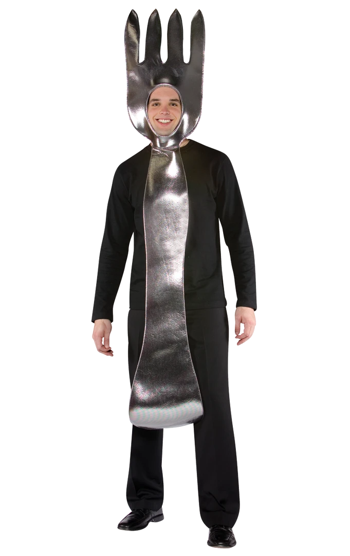 Our Adult Dinner Fork Costume slips easily over your head and is worn over your own black clothing.