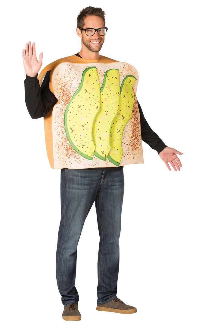 Be your favourite breakfast with the Adults Avocado Toast Costume! The biggest trend of the last two years and it’s still delicious!