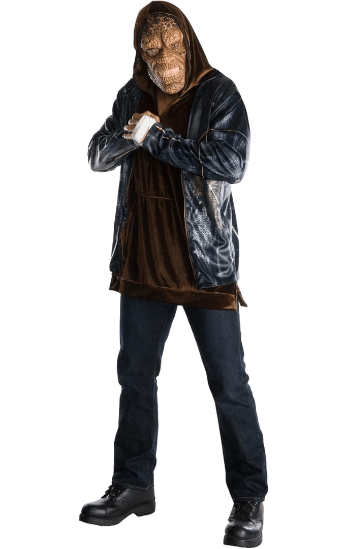 Lurking under the water until someone mentions a fancy dress party, Adult Killer Croc Costume -Nemesis of Batman – is ready to par-tay! The costume includes a hoody with attached jacket, facepiece and gloves.