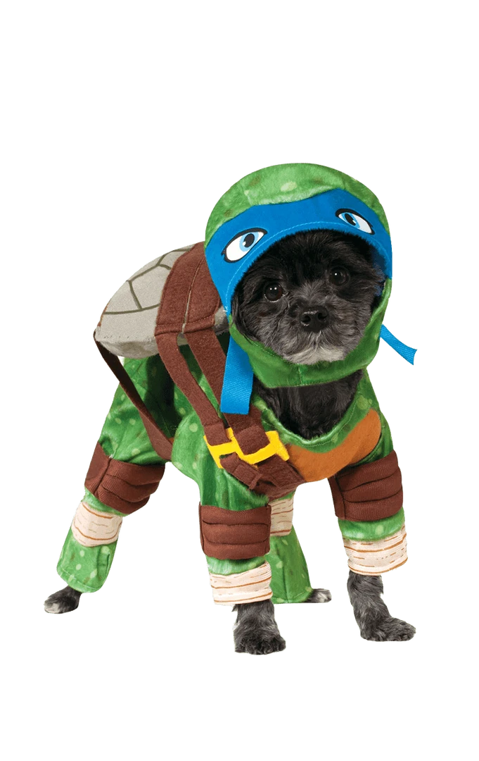 Woah dude! How awesome is our Leonardo – Ninja Turtle Dog Costume! As soon as your pup wears this nostalgic outfit, they may suddenly crave pizza, have a strange urge to head to the sewers and may even start hunting down criminals! Featuring a soft green bodysuit with shell, green snood with facepiece and brown leg details, this outfit is the real deal!