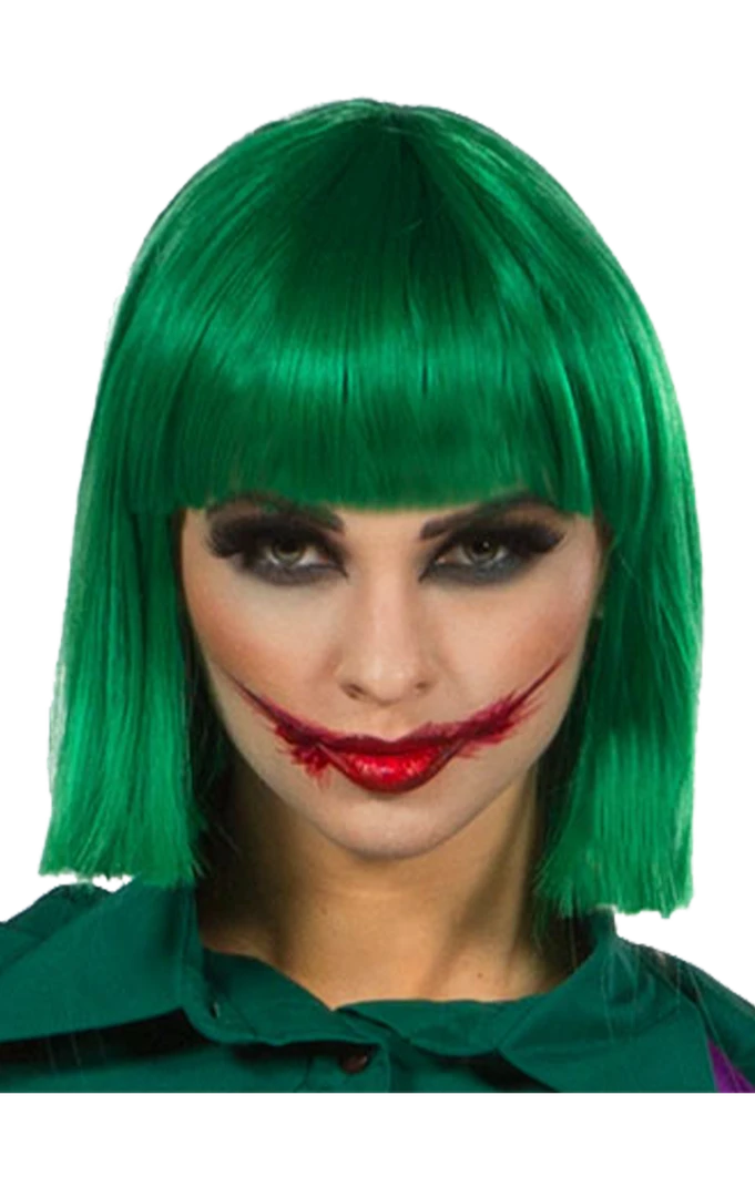 The Cindy Emerald Dark Green Wig matches perfectly as a wig for DC Comics’ The Joker, but can also be used for bold 80’s outfits, ‘out there’ Alice in Wonderland costumes, clowns, jesters and performers. Going to a rave? You’re sure to stand out with this vibrant wig. It’s easy to wear and can be used again and again.